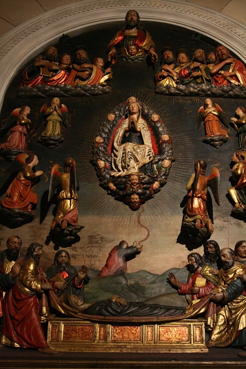 Nov. 7th, 2011 09:21 amПродираюсь через восемь сотен итальянских фотографий (и это уже основательно прореженные еще в дороге, потому что ровно столько влезает на карточку). У меня вопрос, может, кто знает. В лукканской церкви св. Фридиана есть объемное изображение успения Богородицы. В целом понятно: сама она лежит, оплакиваема окружающими, а душу серафимы несут в рай, вокруг ангелы, святые - все, как положено. Но вот кто и зачем на заднем плане держит душу Марии на красной веревочке, как улетающий воздушный шарик?
